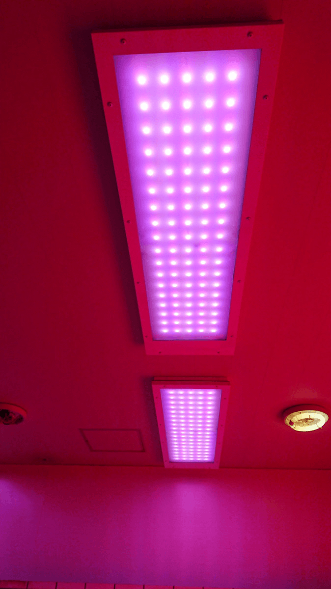 可視光線の中のレッドライト(赤色光633nm)・イエローライト(黄色光590nm)を多く照射する構造のライトを使用しています。